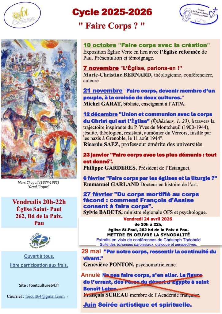 - Première rencontre du cycle 2026 : 14 janvier – 19h30, Ste Bernadette